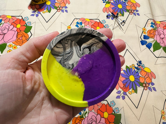 NEON Yellow and Purple Marble Jesmonite Magnetic Pin Dish