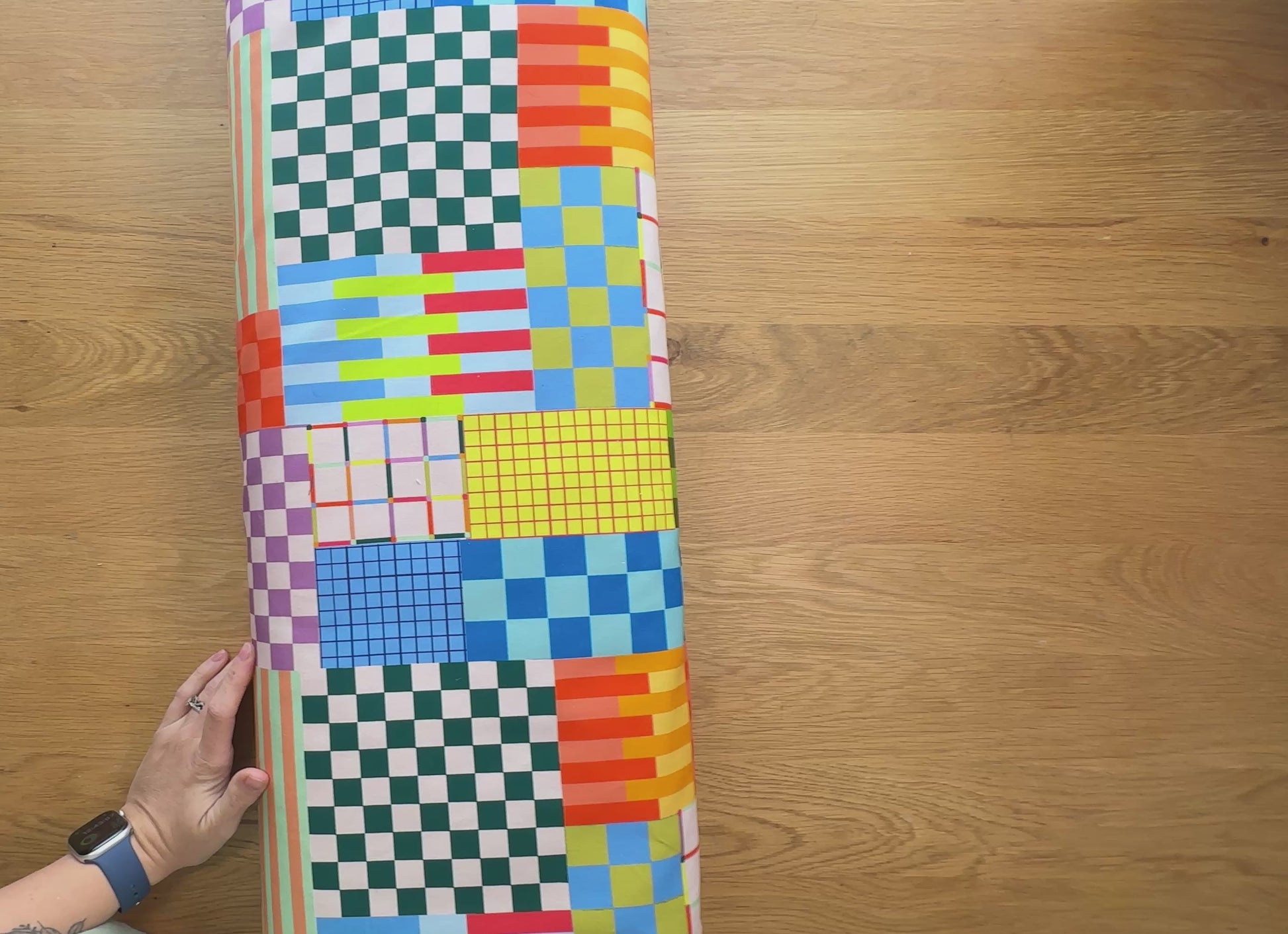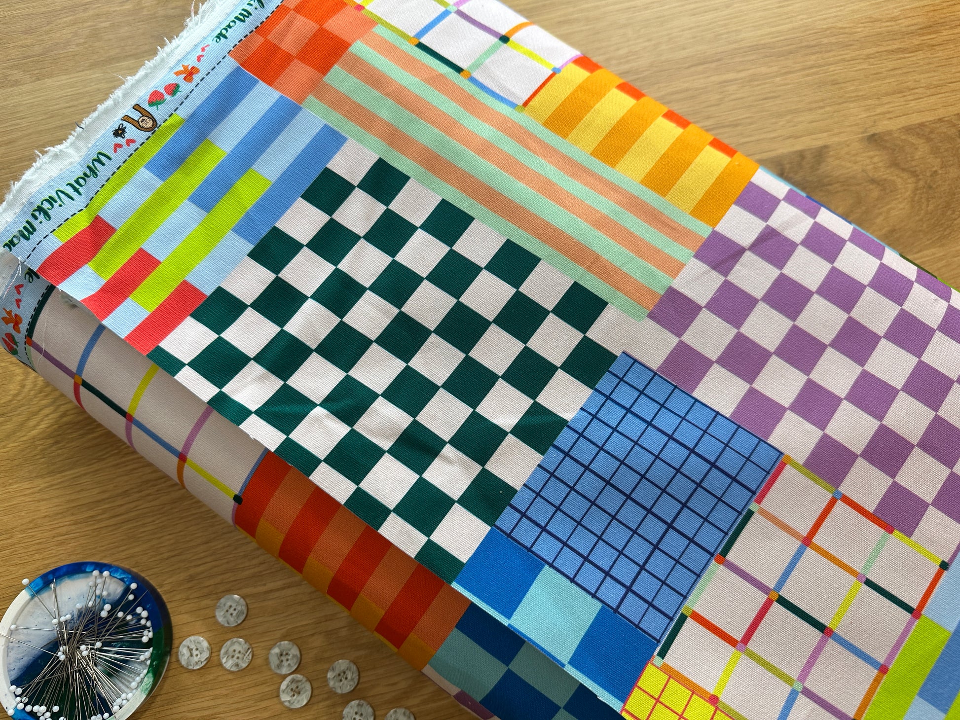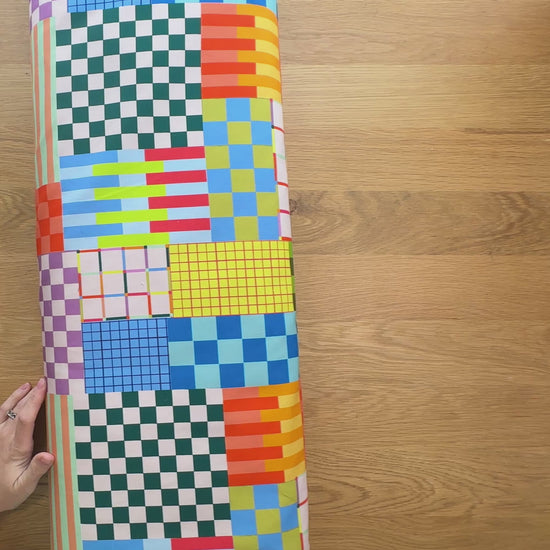 Grid is 1 of 5 fabrics from the What Vicki Made Autumn/Winter 2025 collection. Classic geometric grid designs in a rainbow of colours, a modern design and full of joy.