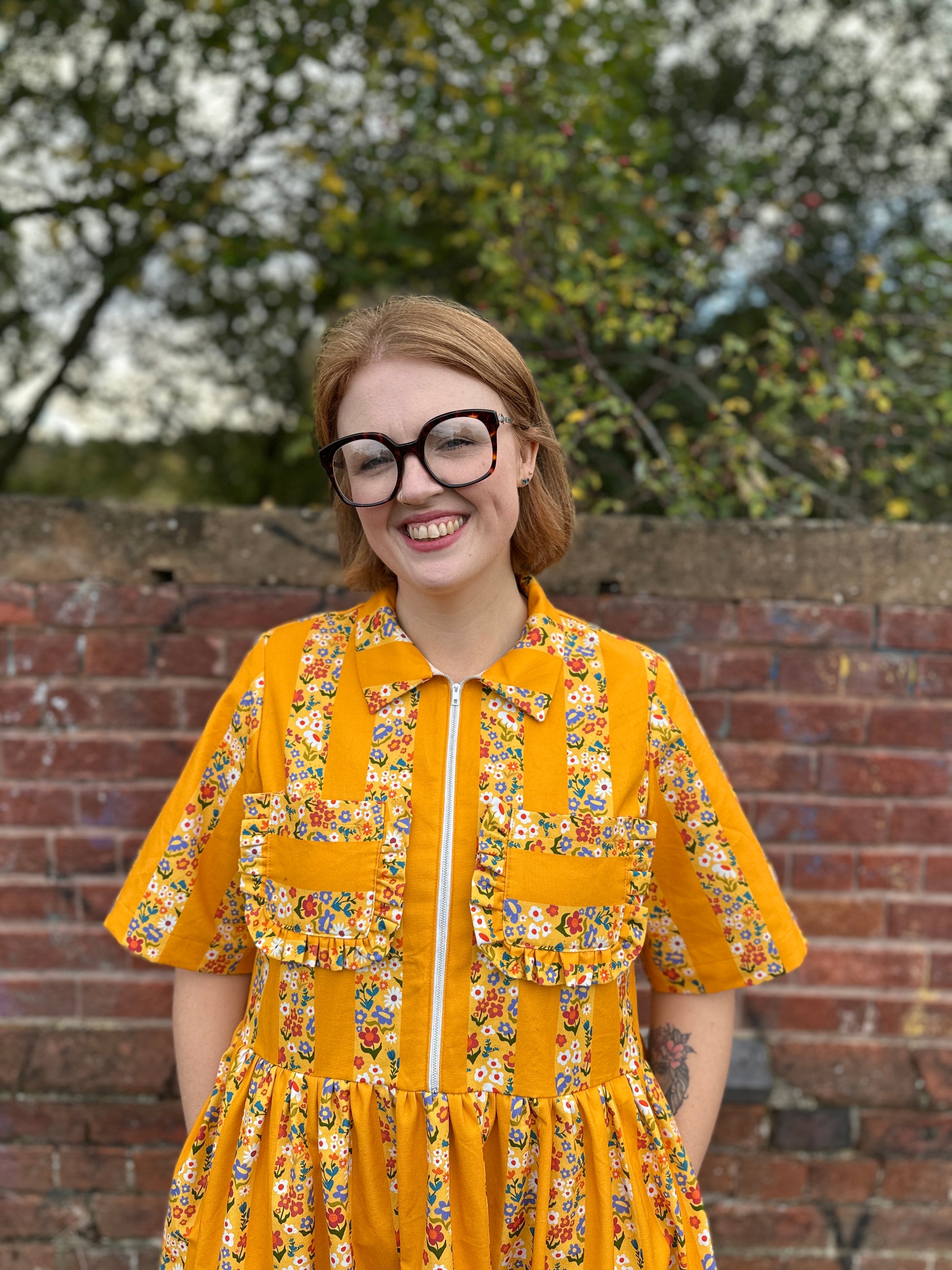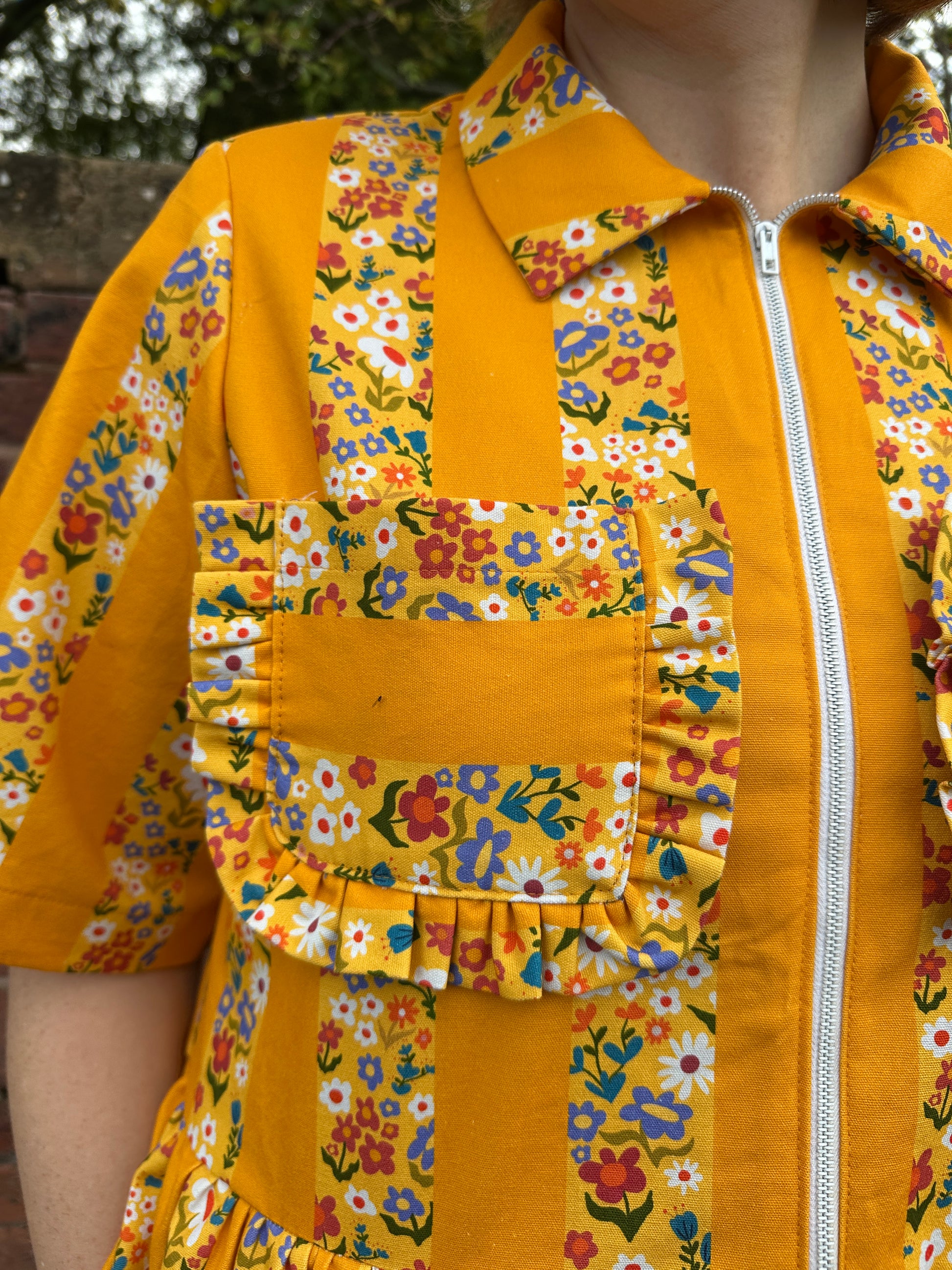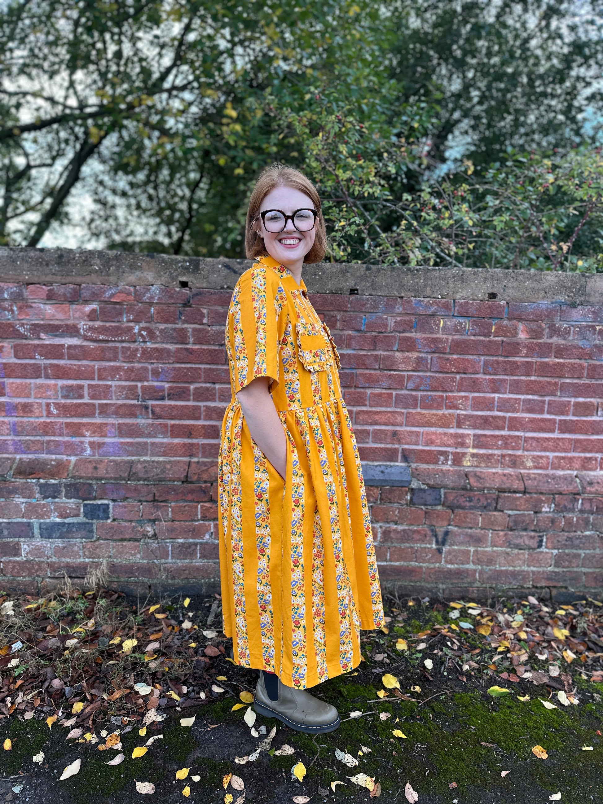 Blossom is 1 of 5 fabrics from the What Vicki Made Autumn/Winter 2025 collection. Classic bold stripes meets timeless floral illustrations in a beautiful yellow colourway.